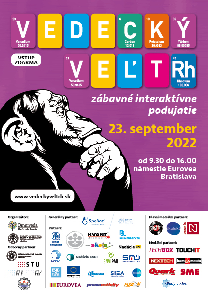 Už o niekoľko dní, v piatok 23. septembra 2022, sa námestie Nákupného centra Eurovea v Bratislave stane dejiskom 5. ročníka Vedeckého veľtrhu. Po dvojročnej pauze, ktorú spôsobila pandémia koronavírusu, bude podujatie aj tentokrát prehliadkou noviniek a zaujímavostí z oblasti vedy, techniky a výskumu. Neodmysliteľnou súčasťou Vedeckého veľtrhu je aj Slovenská akadémia vied, ktorá sa v tomto roku predstaví s desiatimi pracoviskami.