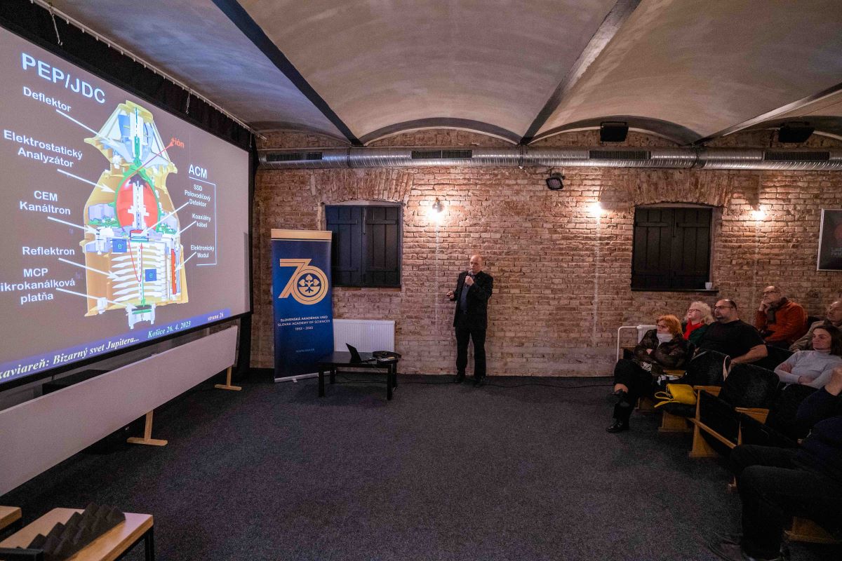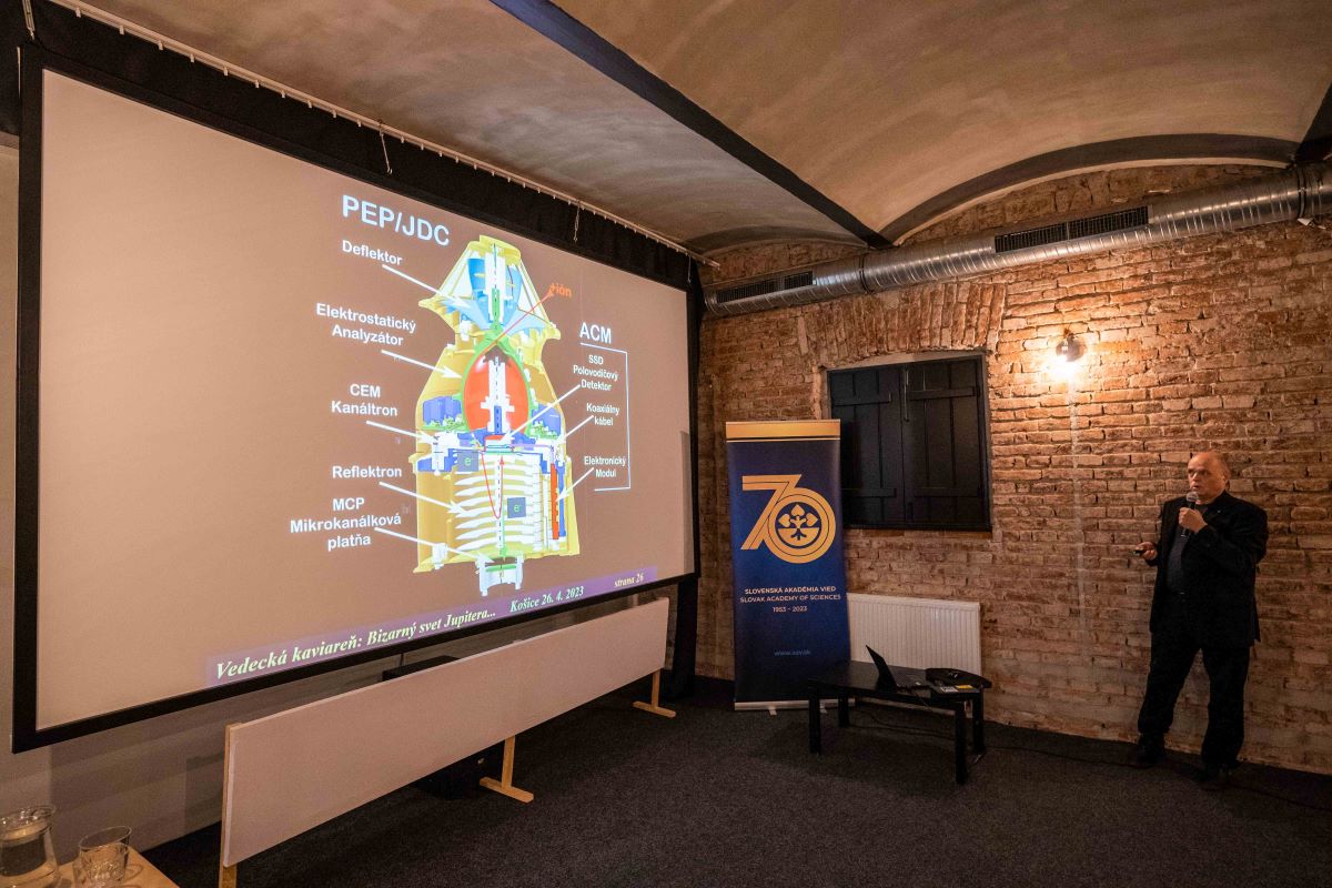 V piatok 14. apríla 2023 o 14.14 h odštartovala z kozmodromu Kourou raketa Ariane 5, ktorá vyniesla na osemročnú púť vesmírom sondu ESA JUICE (JUpiter ICy moons Explorer). Sonda letí k Jupiteru a jeho mrazivým mesiacom, a vo svojom vnútri vezie aj kus umu zo Slovenska, antikoincidenčný detektor, ktorého autorom je Ing. Ján Baláž, PhD., z Ústavu experimentálnej fyziky SAV, v. v. i., v Košiciach. Napriek pracovnej a momentálne aj mediálnej vyťaženosti si Dr. Baláž našiel čas aj na účasť v košickej vedeckej kaviarni, ktorá sa konala krátko po štarte rakety v stredu 26. apríla 2023 už tradične v košickej Tabačke.