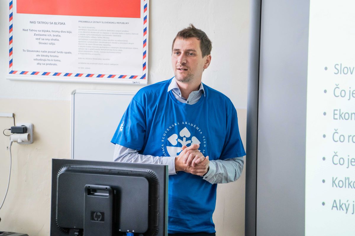 Dr. Marek Radvanský nadviazal na doc. Nemogu svojím vstupom, prečo je matematika pre ekonómov taká dôležitá. Potom predstavil Slovenskú akadémiu vied a jej jednotlivé oddelenia vied. Pokračoval vysvetlením, čo je predmetom skúmania ekonómie, venoval sa ekonomickým princípom a predstavil, čomu sa vedci na Ekonomickom ústave SAV, v. v. i., venujú. V neposlednom rade vyzdvihol prácu vedcov, prečo je ich práca zaujímavá a aké benefity ponúka. Viete, koľko potrebuje Trnava kaderníkov? A prečo sú niektoré pokémonové kartičky vzácnejšie ako iné? Aj na takýchto príkladoch ekonómie v praxi si deti mohli uvedomiť vzťah medzi dopytom a ponukou. „Napriek tomu, že obnoviteľné zdroje máme, treba vyrátať, ako veľmi a ako rýchlo môžeme využívať akýkoľvek zdroj na Zemi na to, aby sme ho obnovili,“ poukázal na vzácnosť zdrojov Dr. Radvanský.