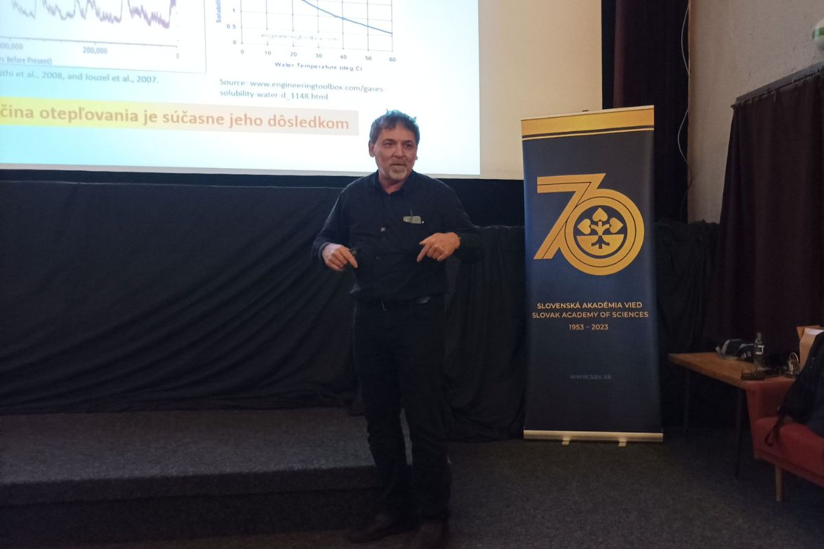 „Prednáška nadväzuje na predchádzajúcu prednášku, v ktorej sme sa venovali možnému vplyvu človeka na prebiehajúcu klimatickú zmenu a ľudským možnostiam ako ju zmierňovať, bez výrazného negatívneho dopadu na dosiahnutý civilizačný komfort.