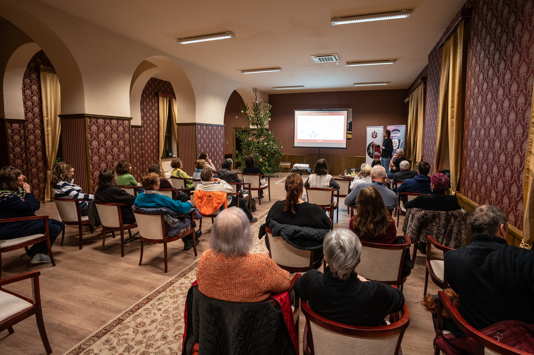Záverečné prednášky cyklu Vivat scientia! Nech žije veda! v roku 2025 patrili chémii a symbolicky aj adventnému obdobiu. Dr. Filip Květoň z Chemického ústavu SAV, v. v. i., vystúpil v decembri s rovnakou prednáškou Chemický adventný kalendár v Kultúrno-kreatívnom centre Kláštor v Rožňave aj v Radnici v Lučenci. Popularizačné návštevy vedcov v regiónoch tak uzavrela téma, ktorá prirodzene patrí k Vianociam. Publikum sa dozvedelo, že za mnohými sviatočnými symbolmi sa skrývajú viaceré zaujímavé prírodné javy.