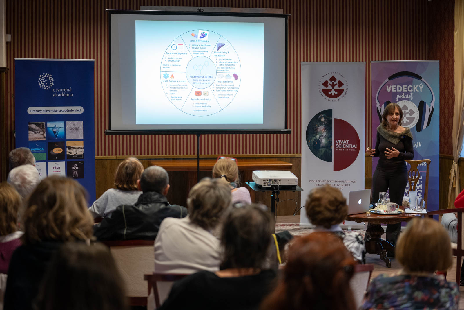 Téma Oľgy Pecháňovej prilákala veľké množstvo návštevníkov, ktorí zaplnili sálu historickej lučeneckej radnice. Uznávaná vedkyňa publiku v prednáške zdôraznila, že rastliny si v nepriaznivom prostredí vytvárajú obranné látky – polyfenoly, známe aj ako antioxidanty. Práve tie sa následne dostávajú do ľudského tela prostredníctvom potravy. „Rastliny nás dokážu trénovať. Učia naše telo, ako sa brániť stresu a chorobám,“ vysvetlila O. Pecháňová. Zaujímavým poznatkom pre publikum bol okrem iného aj fakt, že viac týchto látok obsahujú práve rastliny vystavené stresu, napríklad divo rastúce plody, ktoré musia bojovať so suchom či vetrom.